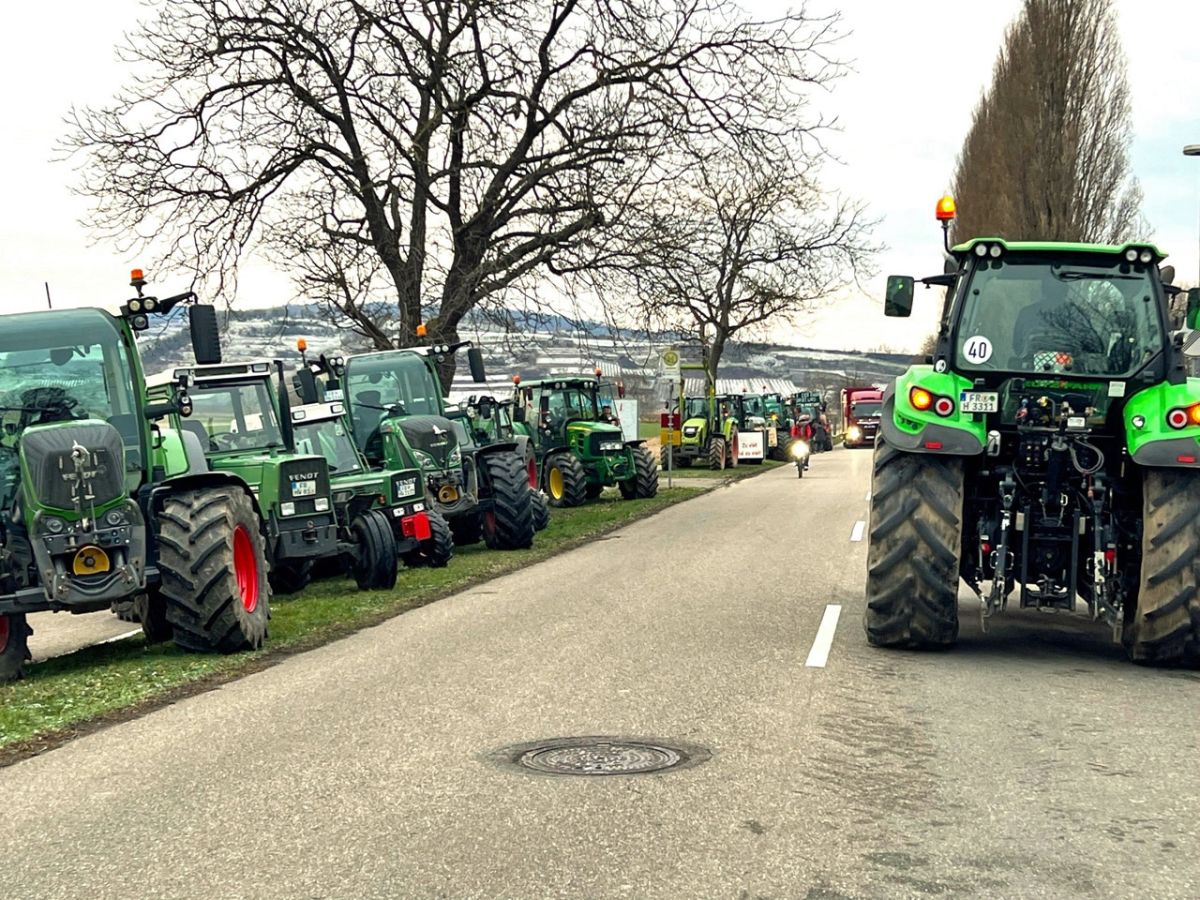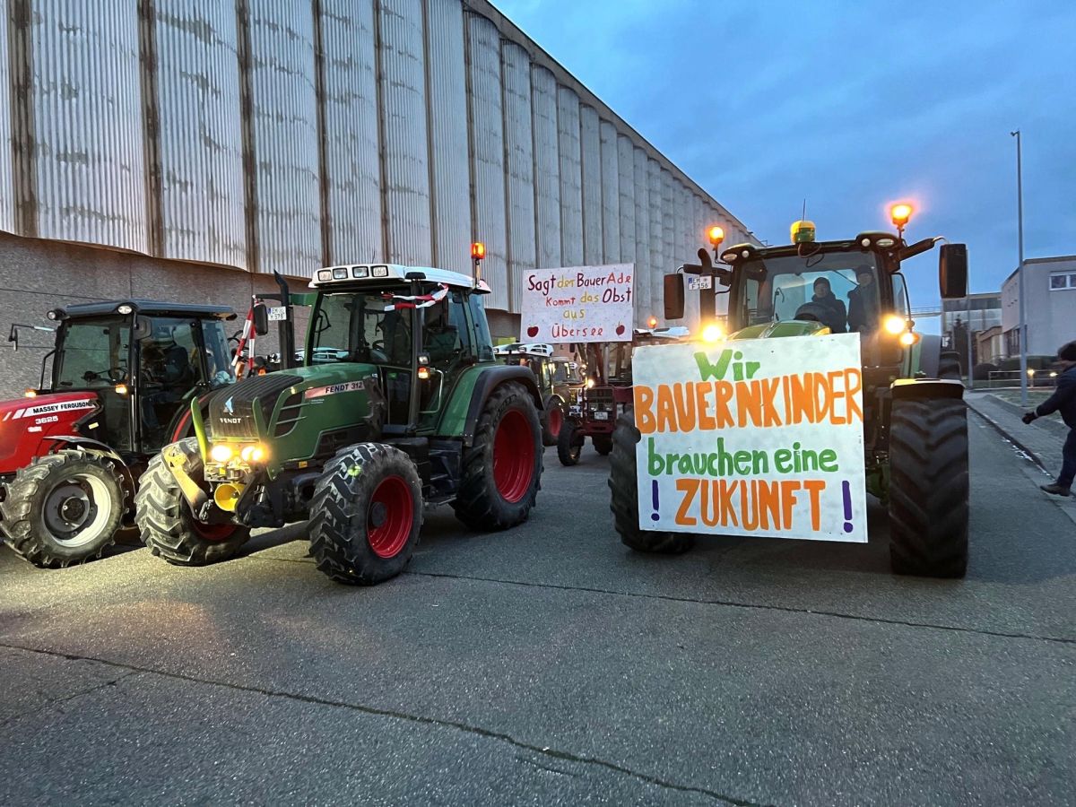 Traktoren-Demo macht Station beim Badischen Winzerkeller