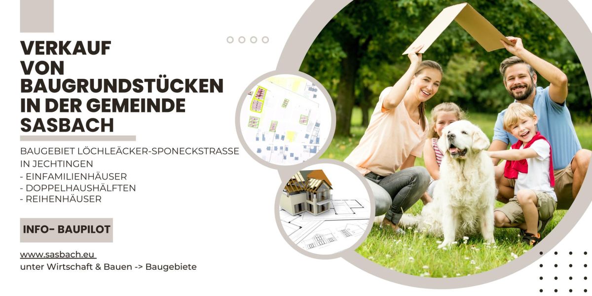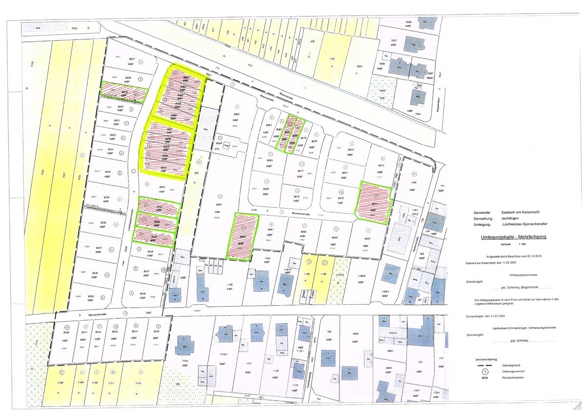 Das Baugebiet Löchleäcker Sponeckstraße am westlichen Ortsrand vom Sasbacher Ortsteil Jechtingen am Kaiserstuhl, in Nähe der Sportanlagen, wurde 2021 komplett erschlossen. Die Vermessung ist abgeschlossen. Die Grundstücke sind im Grundbuch eingetragen. Der Kaufpreis liegt für Einzelhausbebauung, Doppelhausbebauung und Reihenhausbebauung bei 300.- €/m². Für die Hausanschlusskosten mit den Kontrollschächten werden zusätzlich 4.400 € berechnet. In Teilbereichen (Doppelhäuser und Reihenhäuser) zuzüglich 1053.-€ pro Flüssiggasanschluss.
