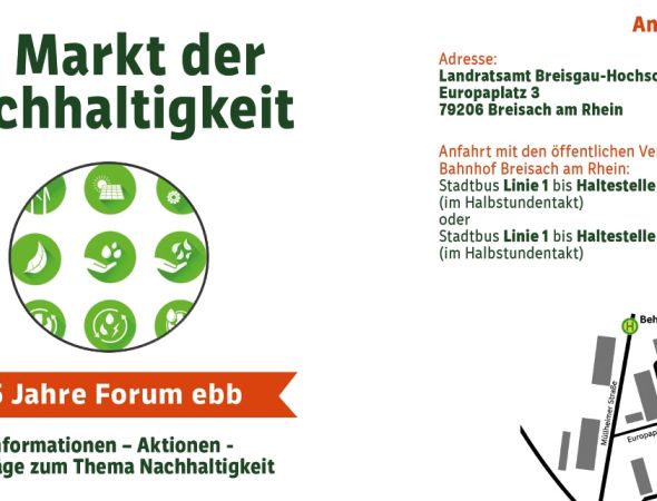 Das Forum ebb lädt am 20. September herzlich zum 15-jährigen Bestehen am Europaplatz in Breisach am Rhein ein. Den Rahmen bildet ein Nachhaltigkeitsmarkt, der bereits zum zweiten Male wiederholt wird.