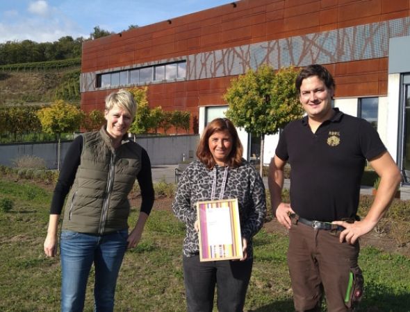 Das Weingut Abril in Bischoffingen trägt das neu eingeführte Weinsüden-Siegel „Wein und Architektur“ der Tourismus Marketing GmbH Baden-Württemberg (TMBW). Die Urkunde wurde jetzt von der Naturgarten Kaiserstu…