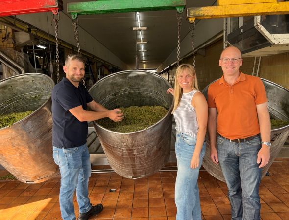 Erste Traubenannahme für frischen Federweißer. Schöne Qualität und Menge zu erwarten. 2024 wird ein ausdrucksstarker Jahrgang.