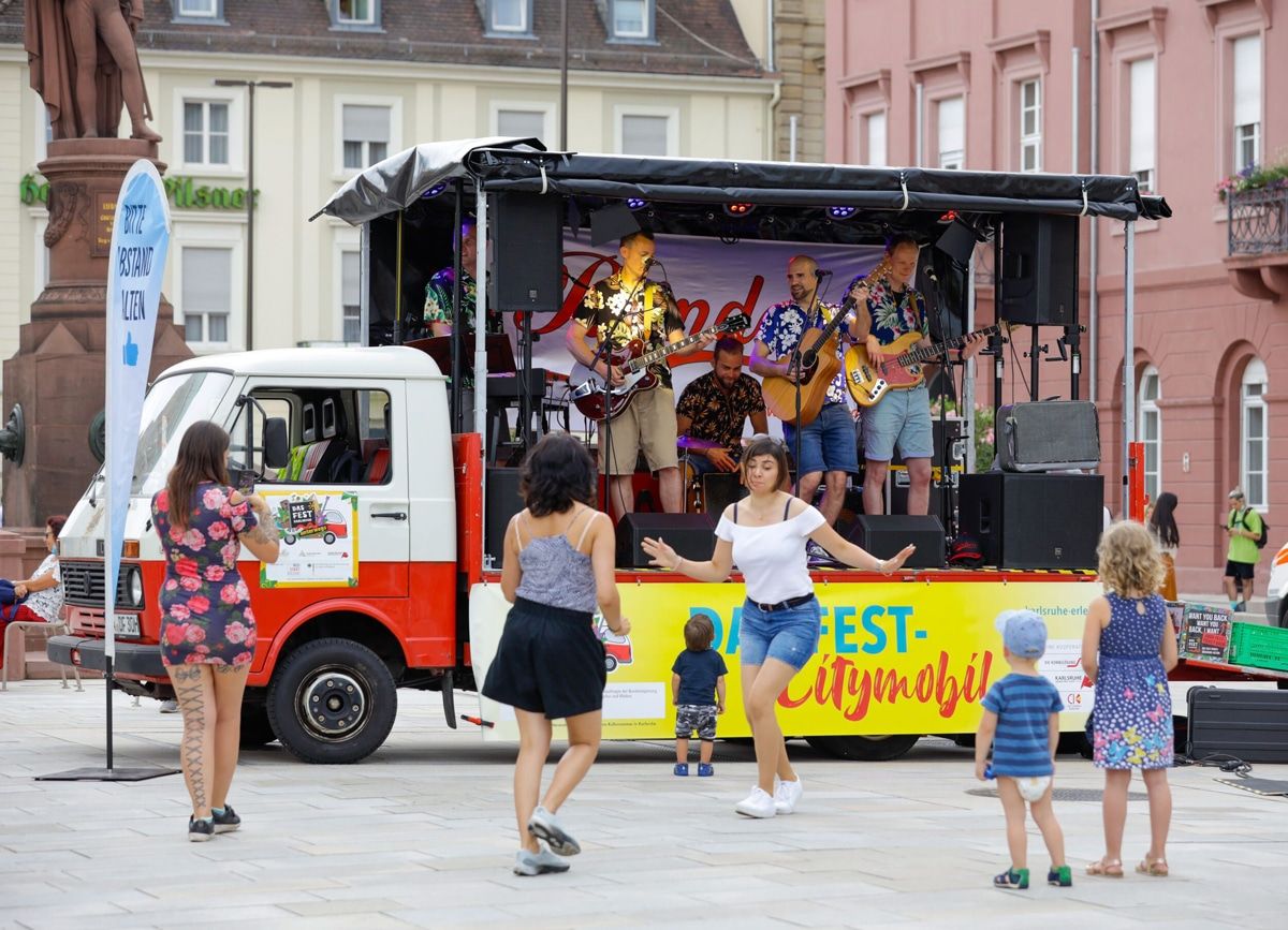 Weiterhin ist das Citymobil am 15. und 16. Juli, 13. August und 11. September in der Karlsruher Innenstadt unterwegs. Freuen dürfen sich die Besucherinnen und Besucher auf den Karlsruher Rapper Nyso (15.7., jubez on Tour), die Rockband Fancity und das Karlsruher Schlagzeug-Urgestein Rudi Metzler (beide am 16.7.).