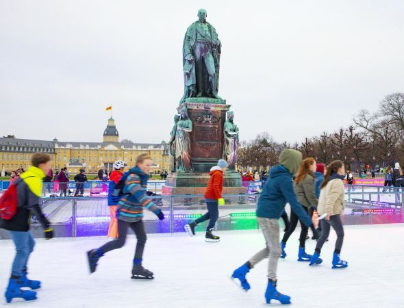 Die Eislaufbahn der Stadtwerke EISZEIT vor dem Karlsruher Schloss kann auch weiterhin geöffnet bleiben und bietet den Besucherinnen und Besuchern ein willkommenes Sportangebot an der frischen Luft – ob beim Ei…