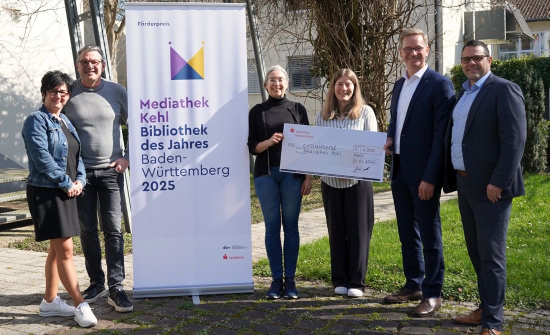 Die Mediathek Kehl ist weit mehr als eine klassische Bibliothek. Sie versteht sich als moderner Treffpunkt für Menschen aller Generationen – ein Ort, an dem Lesen, Lernen und Austausch im Mittelpunkt stehen. Neben einem breit gefächerten Medienangebot bietet sie Veranstaltungen, Projekte zur Leseförderung sowie Angebote zur Stärkung der Medienkompetenz. Insbesondere für Kinder und Jugendliche stellt sie einen wichtigen Zugang zu Bildung und Wissen dar. In 2025 erhielt die Mediathek für ihr großartiges Engagement den Förderpreis „Bibliothek des Jahres Baden-Württemberg“ in Höhe von 5.000 Euro – prämiert durch den Deutschen Bibliotheksverband e.V. gemeinsam mit dem Sparkassenverband Baden-Württemberg. Besonders beeindruckt zeigte sich die Jury über das eigens entwickelte Schulungsangebot der Mediathek zum Thema Künstliche Intelligenz.