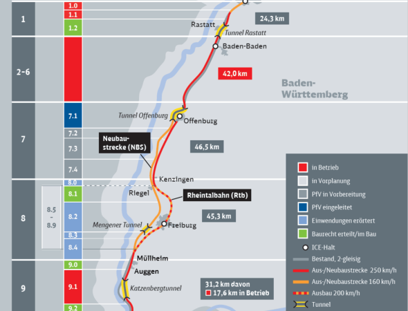 Die Planung zum Aus- und Neubau der Rheintalbahn geht voran: Das Regierungspräsidium Freiburg (RP) hat das Anhörungsverfahren im Planfeststellungsabschnitt (PfA) 8.0 zwischen Kenzingen und Riegel/Malterdingen…