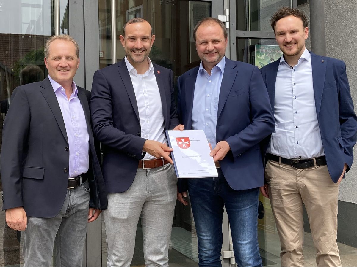 v.l.n.r.: Jochen Debus (Leitung badenova Kommunalmanagement), Christoph Zachow (Bürgermeister Heitersheim), Reinhold Lohr (Geschäftsführung badenovaNETZE) und Matthias Segeritz (Leitung Finanzverwaltung Heitersheim)