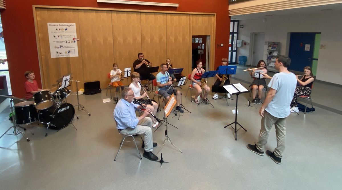 Gemeinsam mit den erfahreneren Musikern des Projektorchesters werden die ersten Schwierigkeiten in der Orchestergestaltung und im Zusammenwirken der einzelnen Register in Angriff genommen. Einsätze wollen geübt sein, Rhythmusprobleme werden erkannt, Intonation und Dynamik in ihrer jeweiligen Bedeutung bearbeitet und so manche größere Klippe im Übeprogramm ist in der gemeinschaftlichen Probearbeit ausgetestet und bewältigt worden.