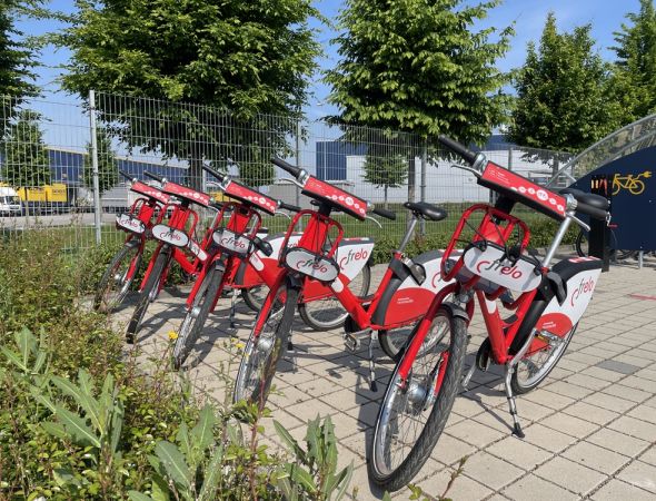 Seit einem Jahr können Beschäftigte und Besucher des Gewerbeparks Breisgau Mieträder nutzen, die an fünf Stationen über den Gewerbepark verteilt sind.