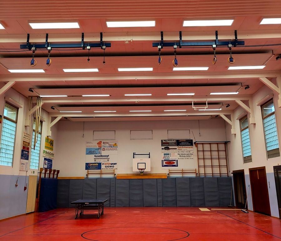 Die Beleuchtung der Halle wird nun mittels Schlüsselschalter auf eine Beleuchtungsstärke im normalen Sportbetrieb von 500 Lux mit Bewegungsmelderbetrieb beziehungsweise auf 1000 Lux im Tischtennisbetrieb geschaltet.