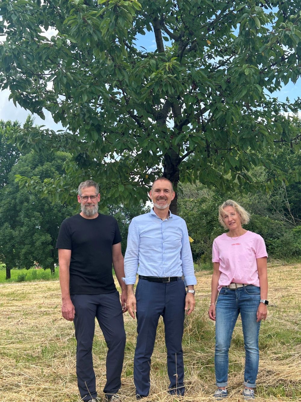 v.l.n.r.: Steffen Vogel (Technischer Leiter Stadtgrün), Oberbürgermeister Jörg Lutz, Miriam Drewke (Fachbereich Umwelt und Mobilität)