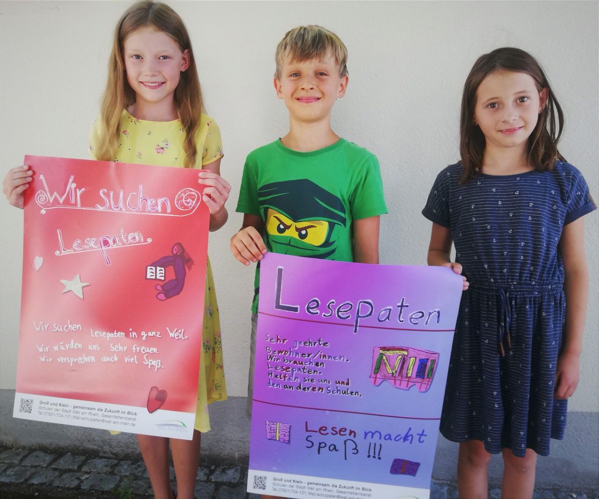 Auch die Schülerinnen und Schüler finden das Projekt klasse. Einige Drittklässlerinnen und Drittklässler der Leopoldschule haben nicht nur die Plakate entworfen, sondern wissen auch um die Wichtigkeit. Marie (8) meint beispielsweise, dass auch ältere Kinder nicht so gut lesen könnten, und deshalb die Chance bekämen sollten, dies noch zu verbessern. Rico (9) erzählt, dass die Corona-Zeit dafür gesorgt habe, dass weniger gelernt worden sei. „Mit den Paten könnte man das etwas aufholen.“ Und Jasmin (9) ergänzt: „Mit Paten, die zu uns kommen, könnten alle Schüler mehr lernen.“