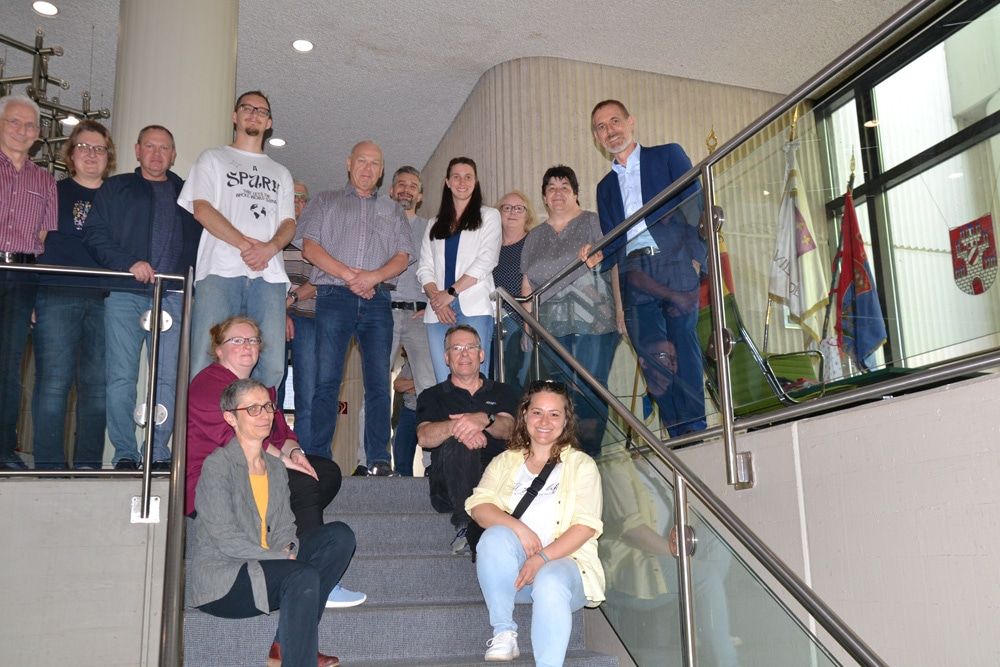 Oberbürgermeister Jörg Lutz (rechts) mit geehrten Blutspenderinnen und Blutspender