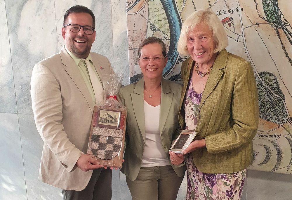 In Weil am Rhein Gast: (v.l.) Trebbins Bürgermeister Ronny Haase, Oberbürgermeisterin Diana Stöcker und Bognor Regis-Delegationsleiterin Heather Perrot betonen beim Empfang im Rathaus die Wichtigkeit der Städtepartnerschaften.