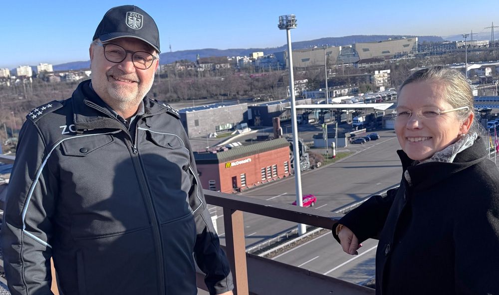 Weil am Rhein. Er ist einer der größten in Europa und der größte Grenzübergang zwischen Deutschland und der Schweiz. Die Fläche der Gemeinschaftszollanlage Basel/Weil am Rhein-Autobahn umfasst rund 35 Hektar auf Weiler Gemarkung. Die Modernisierungsmaßnahmen, die Auswirkungen der Bundespolizeikontrollen sowie die neue Zoll-App waren die Themen eines Gesprächs von Oberbürgermeisterin Diana Stöcker mit Hauptzollamtsleiter Matthias Heuser und Rolf Schemenauer, dem Leiter des Autobahnzollamtes.