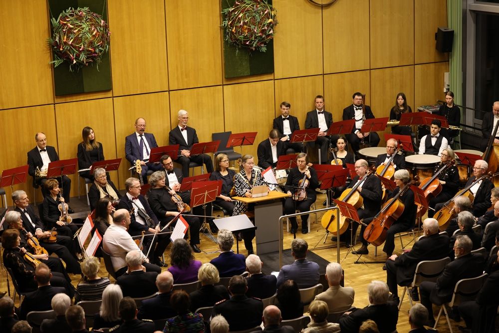 Die Orchestergesellschaft unter der Leitung von Franck Nilly sorgte wieder einmal für die richtigen Töne, mal klassisch, mal beschwingt, mal feierlich. Zum Auftakt spielten die versierten Musikerinnen und Musiker „La cambiale di matrimonio“ von Rossini, es folgten „Gonna fly now“ von Conti und „Raindrops keep falling on my head“ von Bacharach. Des Weiteren begleiteten sie den jungen Überraschungsgast.