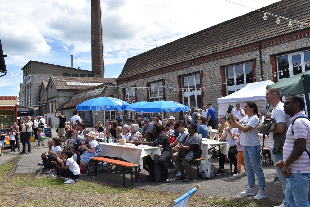 : Beim ersten Quartiersfest 2024 genossen die Besucherinnen und Besucher bei bestem Wetter das abwechslungsreiche Programm auf dem ehemaligen Werksareal der Lauffenmühle.