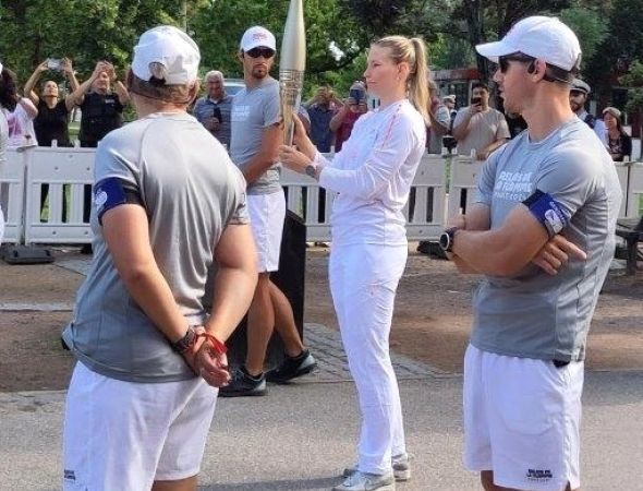 Weil am Rhein. Pünktlich um 9.45 Uhr war es soweit: Die Olympische Fackel wurde auf Weiler Boden am Rande der Dreiländerbrücke entzündet. Die deutsche Olympiasiegerin im Ringen, Aline Rotter-Focken, machte sic…