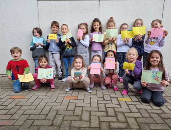 Weil am Rhein. Karte gestalten und Menschen glücklich machen: Klingt einfach und ist es auch. Dann, wenn man sich die Zeit nimmt, Buntstifte hervorkramt und loslegt. Die Mädchen und Jungen des städtischen Kind…