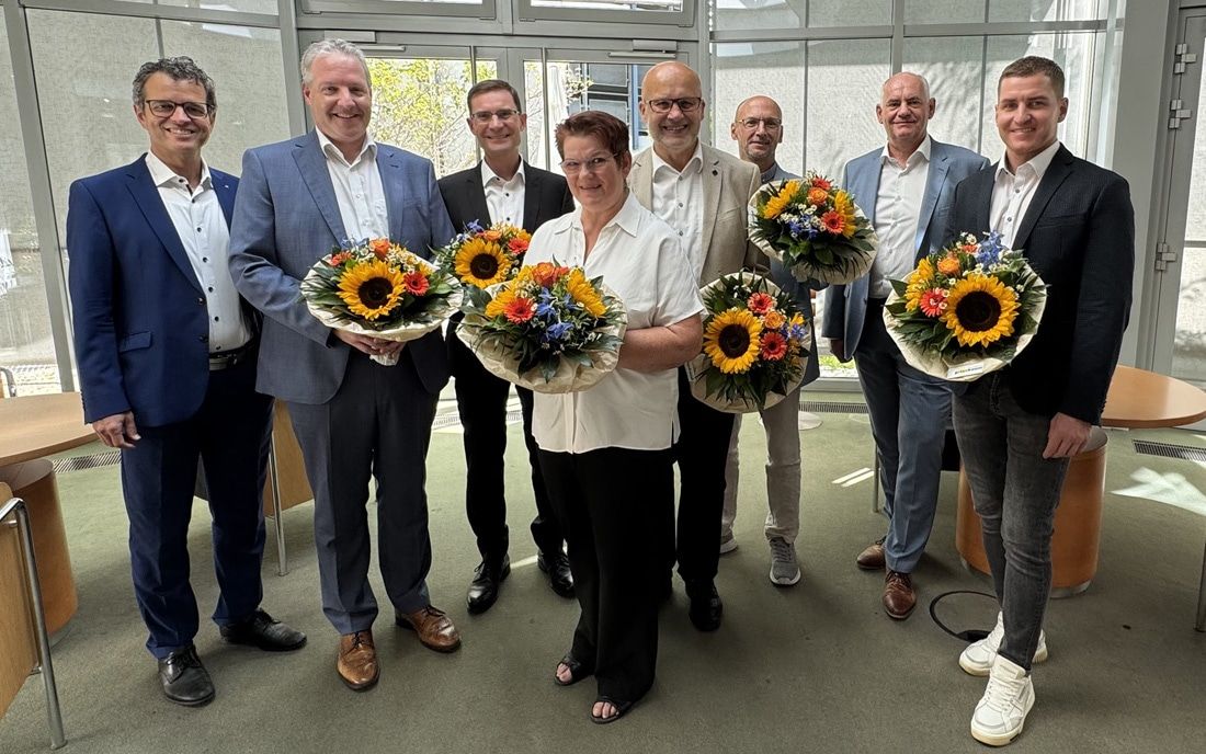 v.l.n.r.): Vorstandsvorsitzender Peter Rottenecker, Philipp Rösch, Christian Ohnemus, Gabriele Messmer, Timo Danielli, Ulrich Friedrich, Vorstand Reiner Richter und Frank Himmelsbach