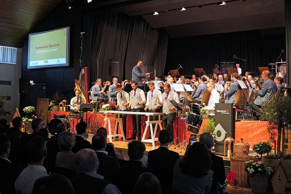 Ein besonderer Höhepunkt des Festakts war die Uraufführung der Heimatsinfonie durch die Stadtkapelle Oberkirch unter der Leitung von Stadtmusikdirektor Zeno Peters. Das eigens für das Jubiläum komponierte Werk von Guido Rennert führte das Publikum in einer eindrucksvollen Verbindung aus Musik und Bild durch zentrale Epochen der Stadtgeschichte. Begleitet von großformatigen Projektionen spannte die Sinfonie den Bogen von Landschaft und Herkunft über historische Einschnitte bis hin zu gelebter Gemeinschaft und Festkultur. Ereignisse wie der Dreißigjährige Krieg oder der Stadtbrand von 1689 fanden ebenso ihren Ausdruck wie kulturelle Identität und Lebensfreude.