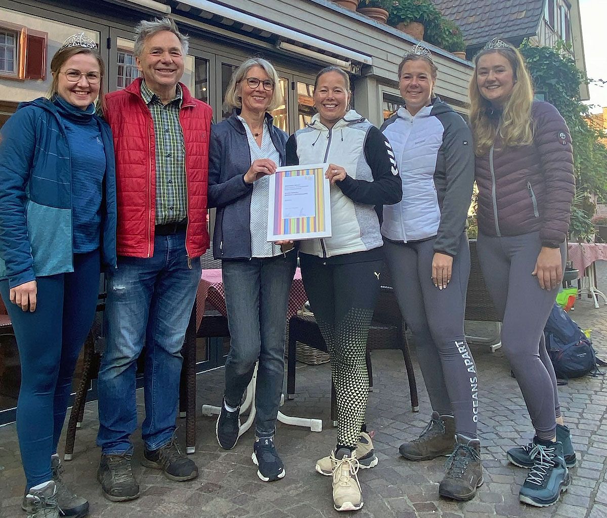 Übergabe der Auszeichnung „Weinsüden Winzer“ an das Weinhaus Julius Renner, Oberkirch. (v.l.n.r.) Badische Weinprinzessin Katharina Bruder, Martin Renner, Sylvia Renner, Katja Remer (Marketing Weinparadies Ortenau), Badische Weinprinzessin Alisa Höll, Ortenauer Weinprinzessin Stefanie Bäuerle