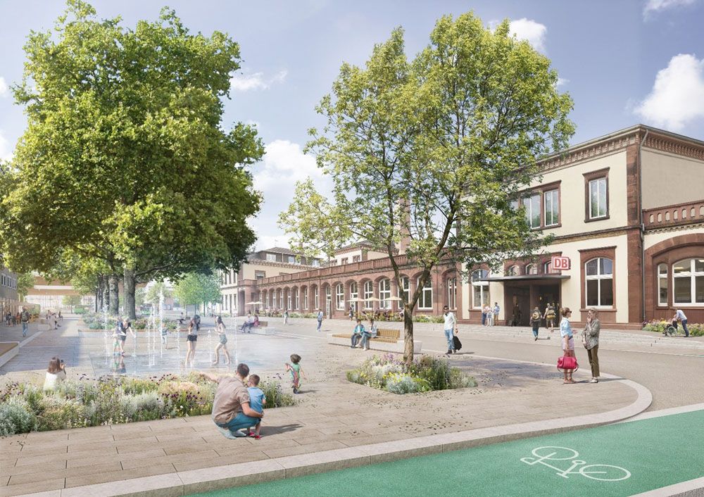 Der Offenburger Bahnhof und das Bahnhofsquartier sollen zu einem attraktiven Eingangstor zur Stadt werden und mehr Raum für Begegnung und Aufenthalt schaffen. Seit 2019 arbeitet die Stadt Offenburg intensiv an der Modernisierung des Bahnhofsquartiers im Rahmen des Sanierungsgebiets „Bahnhof-Schlachthof“. Ziel ist es, das zentral gelegene Areal rund um den Bahnhof zu einer zukunftsfähigen Mobilitätsdrehscheibe und einem attraktiven Stadtquartier zu entwickeln. Bis zur Landesgartenschau 2032 entsteht so ein attraktiver Stadteingang als Visitenkarte für Offenburg.