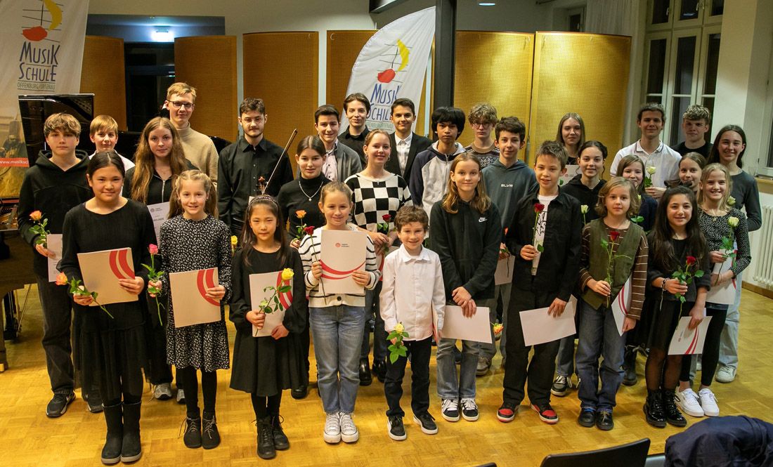 Musikschule Offenburg –Die Hoffnungsträger für Landeswettbewerb „Jugend musiziert“ 2025 nach ihrer Nominierung. Eine Auswahl der Besten werden beim Benefiz-Preisträgerkonzert des Kiwanis-Club Offenburg ihre Stücke präsentieren.