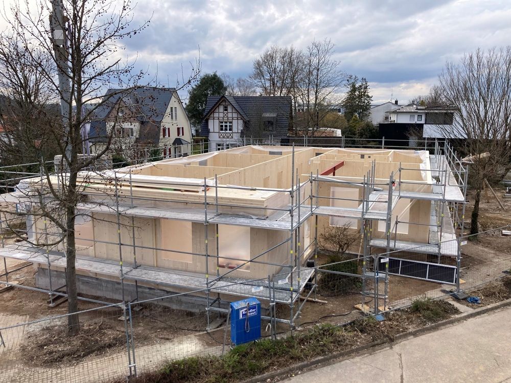 Anfang dieser Woche hat die Baufirma damit begonnen, die ersten Holzmodule zu montieren. Bis Ende der Woche wird das Dach montiert und abgedichtet sein. Im fertiggestellten Rohbau werden anschließend die Fenster eingesetzt sowie mit dem Innenausbau begonnen.
