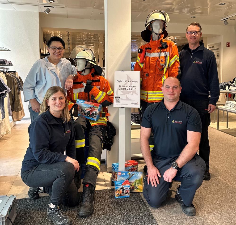 Mit dem Slogan „Style trifft Funktion – Unsere Uniform wartet auf dich“ ist die Aktion Teil einer neuen Mitgliederkampagne der Feuerwehr. Über den angebrachten QR-Code oder direkt unter www.oberkirch.de/meinefeuerwehr gelangen neugierige Kundinnen und Kunden auf die Kontaktseite der städtischen Homepage. Dort können sie ihre Kontaktdaten ganz unverbindlich hinterlassen. Die Feuerwehr meldet sich anschließend zurück. Das Angebot richtet sich grundsätzlich an alle Altersgruppen, besonders aber an Interessierte ab 18 Jahren, die Lust haben, sich in einer der zwölf Abteilungen zu engagieren. Die ersten Reaktionen auf die Feuerwehrpuppen sind bereits sehr positiv, berichtet das Team des Kaufhaus Peters.