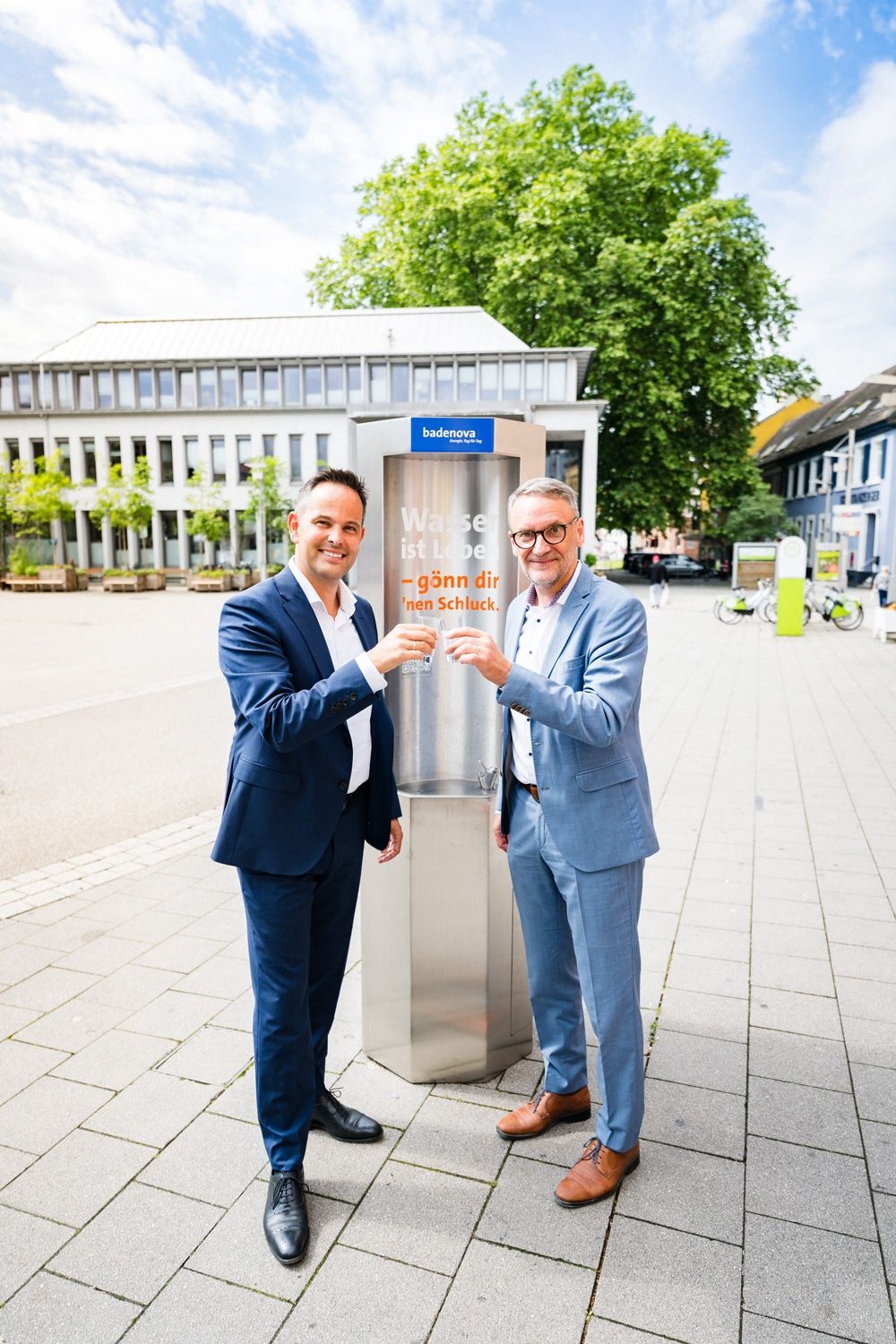 Für die Stadt Lahr ist die mobile Lösung ein Schritt hin zur Umsetzung der EU-Trinkwasser-Richtlinien. Die sehen vor, dass Trinkwasser aus dem Leitungsnetz an öffentlichen Orten frei verfügbar sein sollte. Wo technisch machbar, sollen Kommunen in Parks, Fußgängerzonen oder Einkaufspassagen Trinkwasserbrunnen aufstellen. Als Wasserversorger unterstützt badenovaNETZE Kommunen dabei solche Vorgaben umzusetzen. „Unser Pilotprojekt zeigt: Auch Kommunen, die auf keinen festen Brunnen zurückgreifen können, können mit wenig Aufwand den Menschen Trinkwasser öffentlich zur Verfügung stellen“, so badenova Vorstand Hans-Martin Hellebrand.