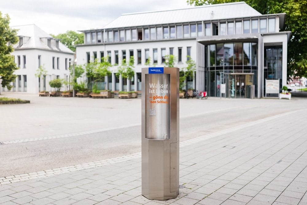 Die badenova-Tochter badenovaNETZE installierte in Lahr ihren ersten mobilen Trinkwasserspender. Damit präsentiert der Wasserversorger eine Lösung, um an öffentlichen Plätzen den Bürgerinnen und Bürgern frisches trinkbares Wasser bereitzustellen.
