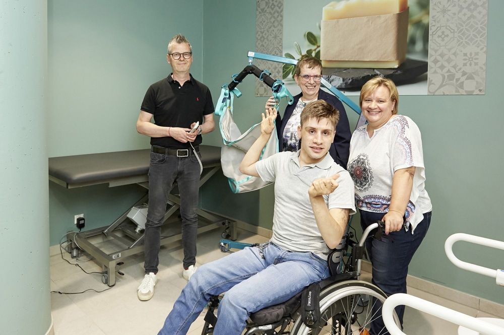Die neue Sanitäranlage ist speziell auf die Bedürfnisse von Menschen mit komplexen Behinderungen und ihre Assistenz ausgerichtet. Durch die Hebehilfe, eine höhenverstellbare Liege und einen luftdicht verschließbaren Windeleimer bietet der Raum einen passenden Ort, um beispielsweise Inkontinenzeinlagen zu wechseln. Das Angebot richtet sich auch an ältere Menschen, die mit Demenz oder Inkontinenz leben. Ohne die umfassende Ausstattung ist gesellschaftliche Teilhabe für die Betroffenen oftmals nicht möglich. Gabriele Huß, ehrenamtliches Mitglied im Aufsichtsrat des Elternvereins „Leben mit Behinderung Ortenau“ und pflegende Mutter ihres erwachsenen Sohnes Manuel, der auf einen Rollstuhl angewiesen ist, freut sich besonders über die neue Einrichtung: „Eine ‚Toilette für alle‘ bedeutet für uns als Familie Menschenwürde. Dann können wir ohne Sorge unterwegs sein, einkaufen gehen, ein Eis essen gehen wie alle anderen auch.“
