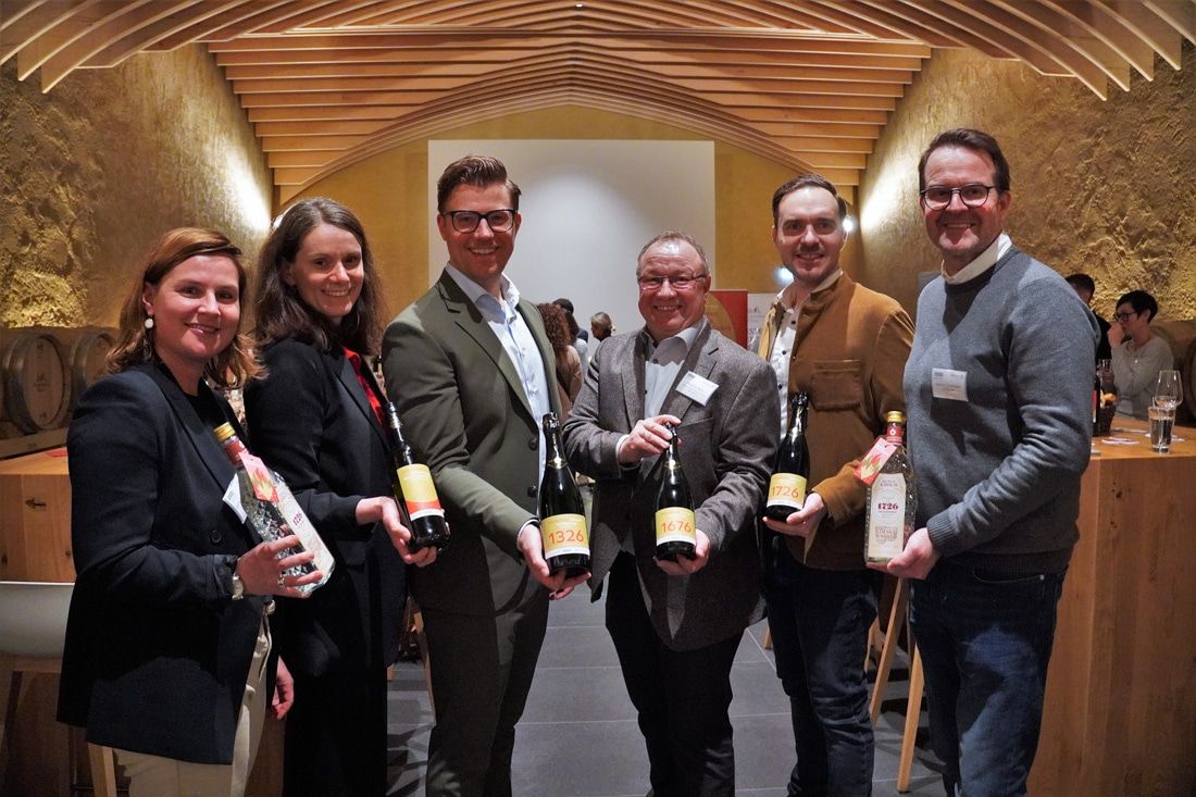 Die Sponsorinnen und Sponsoren der Heimattage Baden-Württemberg 2026 gemeinsam mit Oberbürgermeister Gregor Bühler sowie den städtischen Verantwortlichen beim Austausch im Vinotorium der Oberkircher Winzer.