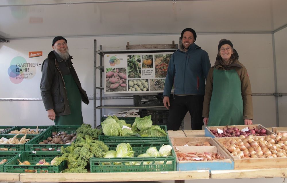 Seit sechs Jahren haben jetzt Sohn Jonathan und Schwiegertochter Tatjana das Zepter in der Hand. Als gelernter Gärtner richtet sich sein Fokus wieder ausschließlich auf Gemüse und Kräuter. „Unsere Eier stammen von freilaufenden Hühnern, deren Zuhause das Hühnermobil auf dem zehn Hektar großen Demeter-Hof ist“, informiert Jonathan Bahr. Gefüttert selbstverständlich mit dem selbst angebauten Getreide. Auch für die große Auswahl verschiedener Tomatensorten in unterschiedlichen Geschmacksrichtungen ist die Gärtnerei Bahr bekannt.