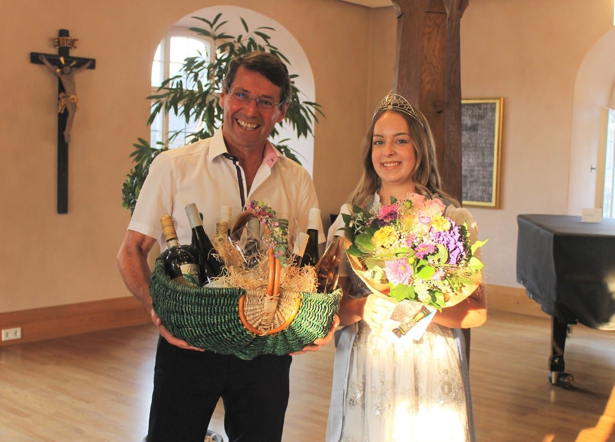 Bürgermeister Bruno Metz war sichtlich stolz, dass mit Carina Kratt nach den ehemaligen Ettenheimer Weinhoheiten Claudia König (ehemals Nägele) und Angelika Leser (ehemals Weber) nun wieder eine Weinprinzessin aus der Barockstadt kommt. In seiner Ansprache hob er ihr große Engagement hervor und schloss sich der Badischen Weinkönigin Jessica Himmelsbach an, die sie als „Powerfrau“ bezeichnet hatte, die auf verschiedenen Feldern aktiv ist. So bringt sie sich in der Katholischen Jungen Gemeinde und in der Narrenzunft ein und mache Kickboxen. Seit drei Jahren gehört Carina Kratt außerdem dem Ettenheimer Gemeinderat an und studiere „nebenbei“ noch Public Management an der Hochschule in Kehl. Bürgermeister Metz ist überzeugt, dass sie in ihrer Amtszeit die Breisgauer Weine charmant, kraftvoll und überzeugend repräsentieren wird.