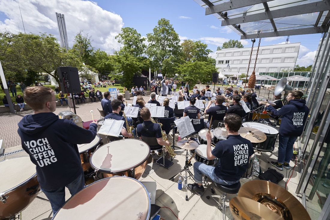 Unter freiem Himmel dringen die Musikerinnen und Musiker unter Leitung ihres erst kürzlich mit der Ehrenmedaille der Hochschule Offenburg ausgezeichneten Dirigenten Udo Sutter zum Auftakt symphonisch in unerforschte Star Trek-Welten vor. Folkartig geht es weiter in die Catskills-Berge im US-Bundesstaat New York. Und auch auf mögliches schlechtes Wetter ist das Orchester unter anderem mit Adeles Pop-Ballade Set Fire to the Rain vorbereitet. Oder die Zuhörenden fliegen mit den Musikerinnen und Musikern einfach jazzig wie bei der Raumfahrtmission Apollo 10 im Mai 1969 zum Mond. Doch unterwegs macht das Orchester erst noch einen Musical-Abstecher ins La La Land und lässt dort die City of Stars sowie – hoffentlich auch wettertechnisch – einen weiteren Sonnentag erstrahlen. Dann können alle beim discomäßigen Picknick im kalifornischen Mac Arthur Park auf Stühlen, Bänken oder selbst mitgebrachten Decken auf dem Campusrasen der Musik lauschen.
