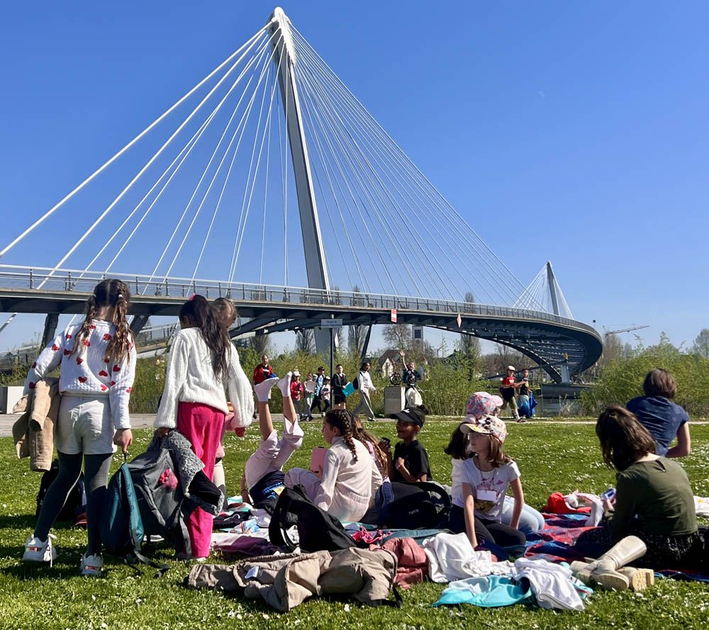 In der Mittagspause spielen rund 130 Kinder der vierten Klassenstufe im sonnigen „Jardin des Deux Rives“ oder entspannen gemeinsam beim Picknick. Julie Théophile, Projektleiterin an der École élémentaire Adélaïde Hautval, unterrichtet ihre Grundschüler teilweise zweisprachig. „Unsere Kinder hatten zunächst etwas Angst, ob sie die deutsche Sprache im Alltag verstehen würden“, erzählt sie. „Doch das war kein Problem – sie haben sofort angefangen, zusammen zu spielen!“ Auch Alina El Goumi, eine der Organisatorinnen auf deutscher Seite, lacht: „Unsere Kinder waren ganz aufgeregt – erkennen wir unsere Brieffreunde gleich? Als wir ankamen, sind sie sofort losgelaufen und haben sich ganz allein gefunden. Das war einfach toll!“ Einige ihrer Viertklässler fragten sie schon, was sie wohl im nächsten Jahr gemeinsam erleben könnten. Die Fünftklässler machen es ihnen mit dem „AUSTAUSCH DES DEUX RIVES“ bald vor – sie treffen sich im Juni zu einer Bootsfahrt mit dem „Batorama“ in Straßburg.