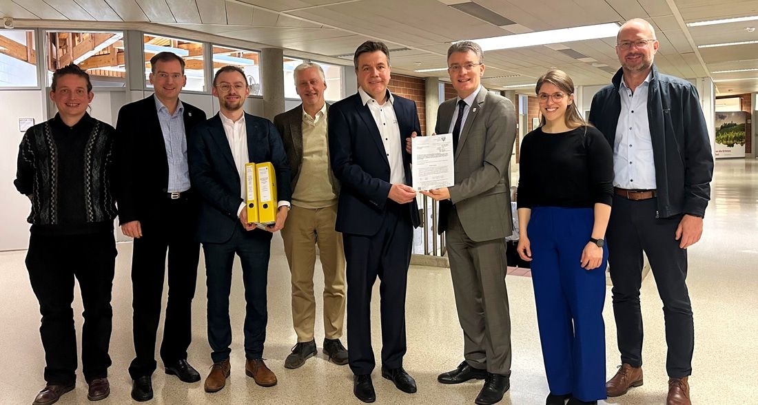 von links: Andreas Sieber (Ökostromgruppe Freiburg) Nikolas Stoermer (Erster Landesbeamter im Ortenaukreis) Lukas Schuwald (Ökostromgruppe Freiburg) Gerd-Volker Waltersbacher (fischer group) Hans-Peter Fischer (fischer group) Landrat Thorsten Erny Katharina Tränkle (Landratsamt Ortenaukreis) Guido Eckenwalder (fischer group)