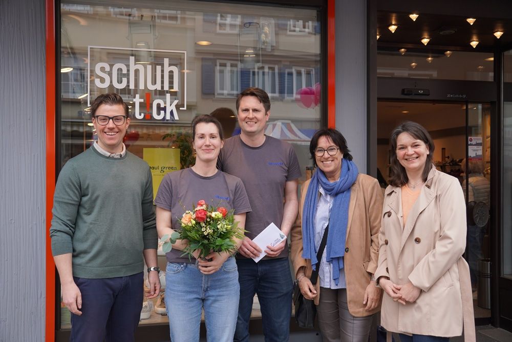 Gemeinsam hießen die städtischen Vertreter Inhaber Sven Theobald und seine Frau Janett mit ihrem neuen Geschäft „Schuht!ck“ herzlich in Oberkirch willkommen. „Seit über 40 Jahren bereiten Sie Ihren Kunden ein großartiges Einkaufserlebnis. Als Familienbetrieb mit Ihrer Philosophie, geprägt von Regionalität, Nachhaltigkeit und Kundenservice, bereichern Sie unsere Einkaufsinnenstadt in ganz besonderem Maße“, betonte Bühler. Mit der Oberkircher Filiale eröffnet die Familie bereits das vierte Schuhhaus in der Region.