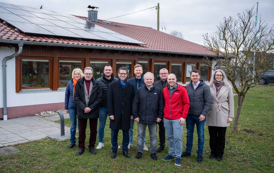 Auf dem Vereinsheim der Siedlergemeinschaft Kippenheim wurde Anfang 2025 die erste PV-Anlage im Rahmen der Solarinitiative der Volksbank Lahr installiert. Foto: Volksbank Lahr Von links: Susanne Hauser (Leiterin Kommunikation, Volksbank Lahr), Norbert Bürkle-Kaluscha (Zweiter Vorstand Siedlergemeinschaft Kippenheim), Johannes Weide (Geschäftsführer der Volksbank-Tochter BackVRST Capital Management GmbH), Frank Peter Rottenecker (Volksbank-Vorstandsvorsitzender), Moritz Huber (E-Werk Mittelbaden), Günter Fuchs (Erster Vorstand Siedlergemeinschaft Kippenheim), Martin Wenz (Leiter Erzeugung & Finanzen E-Werk Mittelbaden), Michael Damian (Energiedienstleistungen, E-Werk Mittelbaden), Bürgermeister Matthias Gutbrod und Daniela Becker (Nachhaltigkeitsbeauftragte der Volksbank Lahr).