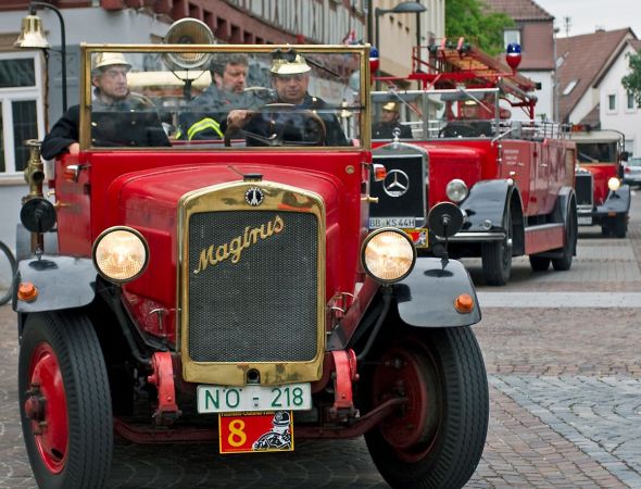 Historische Feuerwehrfahrzeuge auf dem Lahrer Rathausplatz