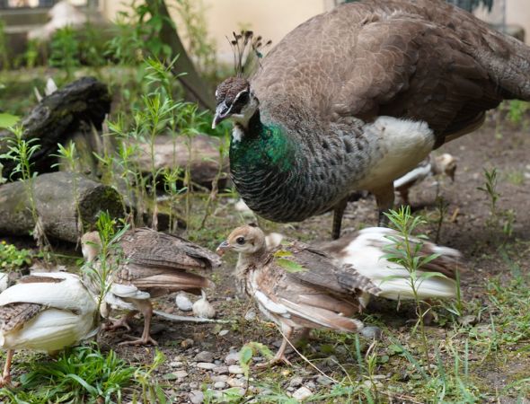 Ein Geschenk zum 150. Jubiläum: Ein Pfauenweibchen hat Nachwuchs. Ende Juni sind sechs Pfauenküken im Lahrer Stadtpark geschlüpft