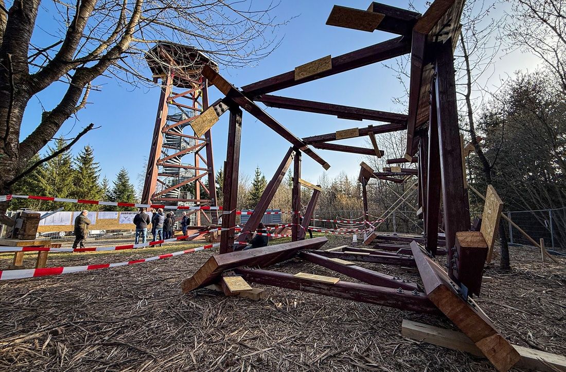 Ausgangspunkt der jetzt durchgeführten Maßnahmen war ein statisches Gutachten aus dem Sommer 2025, das erhebliche Mängel an der Holzkonstruktion aufgezeigt hatte. In der Folge wurde der Turm gesperrt, ein Rückbaukonzept erarbeitet und der Aussichtsturm im Dezember 2025 bis auf eine sichere Höhe von rund 16 Metern zurückgebaut. Die dabei gewonnenen Holzbauteile bildeten die Grundlage für die nun abgeschlossenen Detailuntersuchungen.