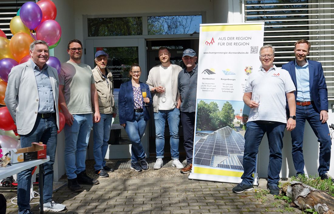 Das letztgenannte Projekt wurde gerade abgeschlossen. Dieses Ereignis nahm die BEG Durmersheim zum Anlass, um das Erreichte gemeinsam mit der Stadtverwaltung an der Kindertagesstätte Stockhorn im Rahmen einer offiziellen Einweihung der dortigen Solaranlage zu feiern. Mit dabei waren Mitglieder der BEG Durmersheim, inklusive Vorstand und Aufsichtsrat, auch Vertreter der Stadt Rastatt, angeführt von Bürgermeister Raphael Knoth, des Klimabündnisses Rastatt sowie die Kindergartenleitung. Die Nutzer der Kita wurden ebenfalls in die Aktion einbezogen: Das BEG-Team verschenkte Luftballons an die Kinder und informierte die Eltern über die Rastatter Solarprojekte.