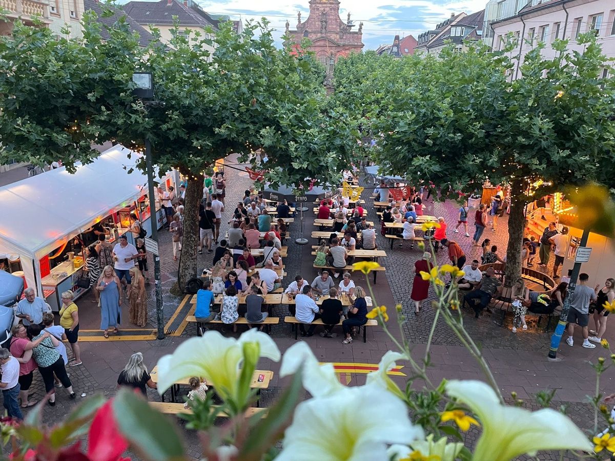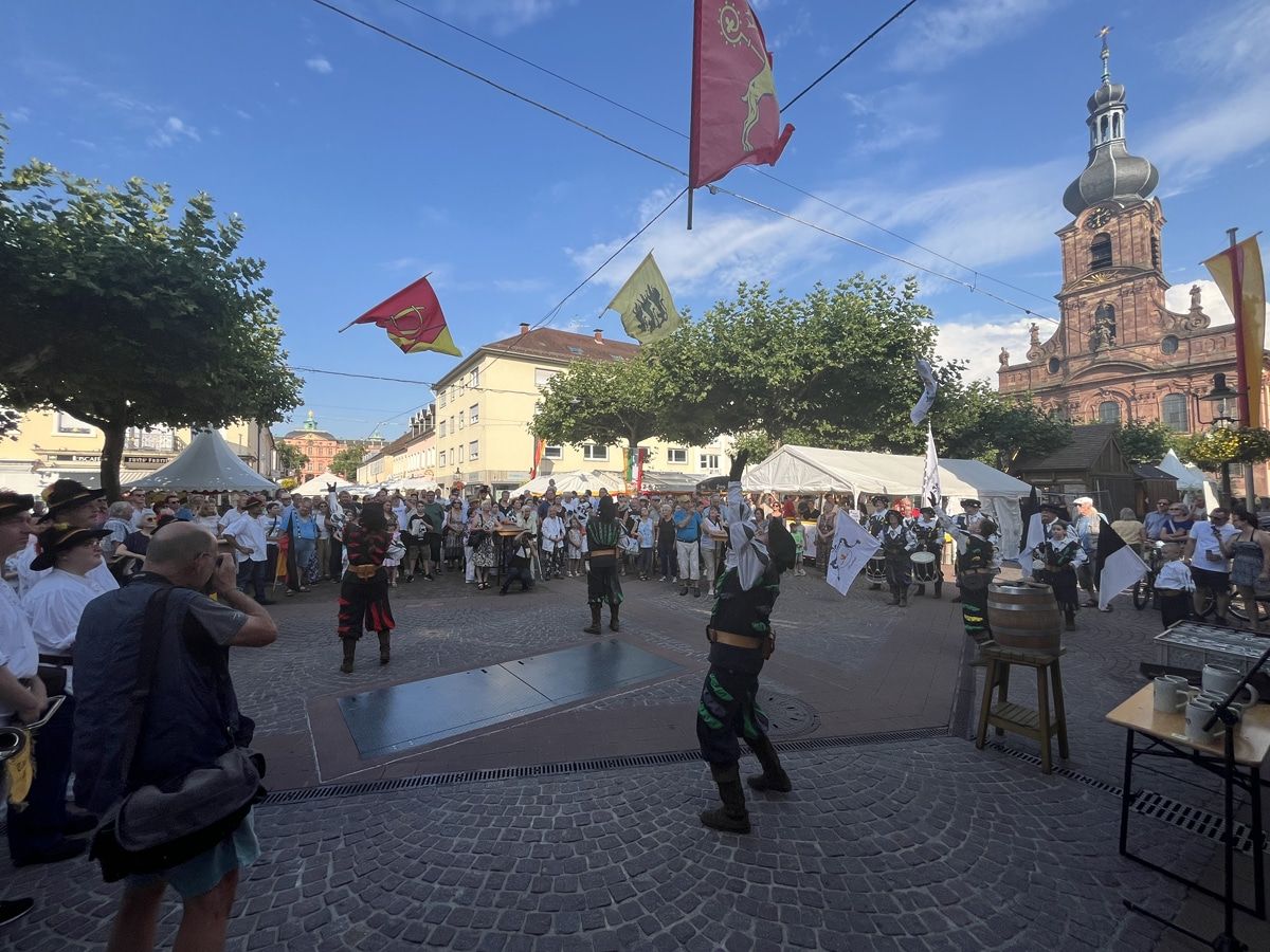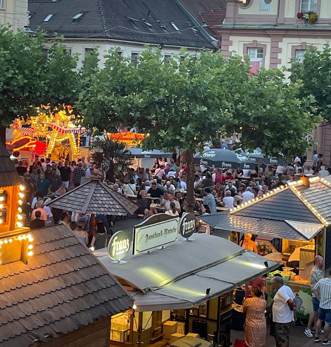 Über den gesamten Marktplatz verteilten sich die 15 Ständen aus Holzhütten und Zelten, teils dekoriert in historischer Optik und in den Farben Badens. Rastatter Vereine, Schausteller und Gastronomen boten dort allerlei Speis und Trank an.