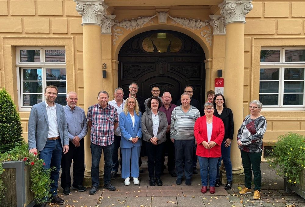 Bürgermeister Raphael Knoth (links) zeichnet im Rossi-Haus langjährige Mitarbeiterinnen und Mitarbeiter aus und verabschiedet einige mit den besten Wünschen in den Ruhestand.