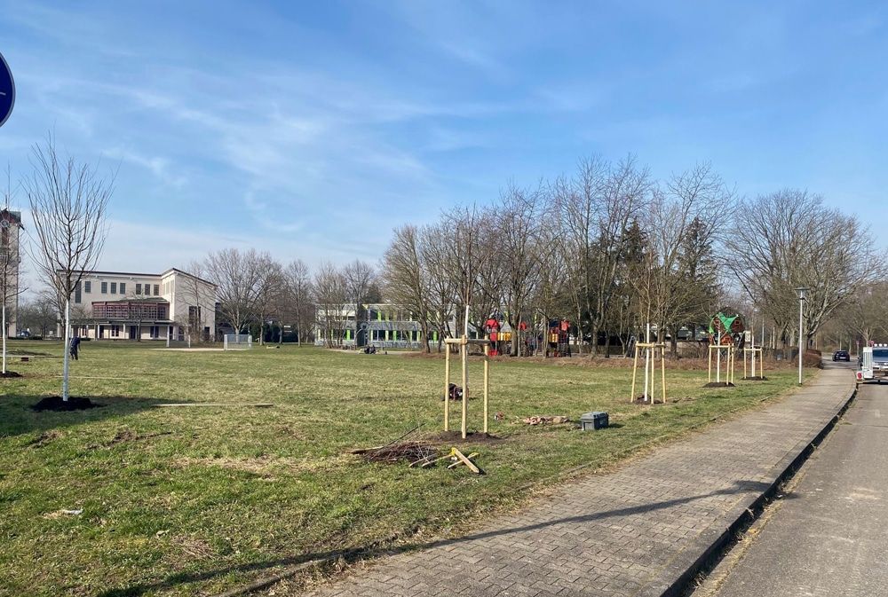 Die in dieser Woche mit Unterstützung der städtischen FÖJler (Freiwilliges Ökologisches Jahr) gepflanzten Klimabäume sollen jetzt erstmal in Ruhe ihre Wurzeln schlagen können, ehe sie voraussichtlich im kommenden Sommer bereits als Schattenspender für die Grünfläche dienen. Die Stadtverwaltung bittet daher darum, die Grünfläche in den ersten Monaten nicht zu betreten und auch Hunde davon abzuhalten, ihr Geschäft dort zu verrichten.