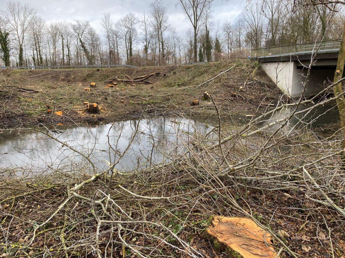 Ein kleines Trostpflaster sei, dass der zuvor vollkommen eingewachsene Riedkanal an der L77 nun durch den Lichteinfall „zu neuem Leben“ erwachen könne. Zudem werden in Kürze auch wieder junge Waldbäume angepflanzt. Und anders als an dieser Stelle entstehen entlang der Akazienstraße keine Kahlflächen. „Wir gehen davon aus, dass der verbleibende Waldbestand sich über die Jahrzehnte wieder schließt“, hofft der städtische Förster.