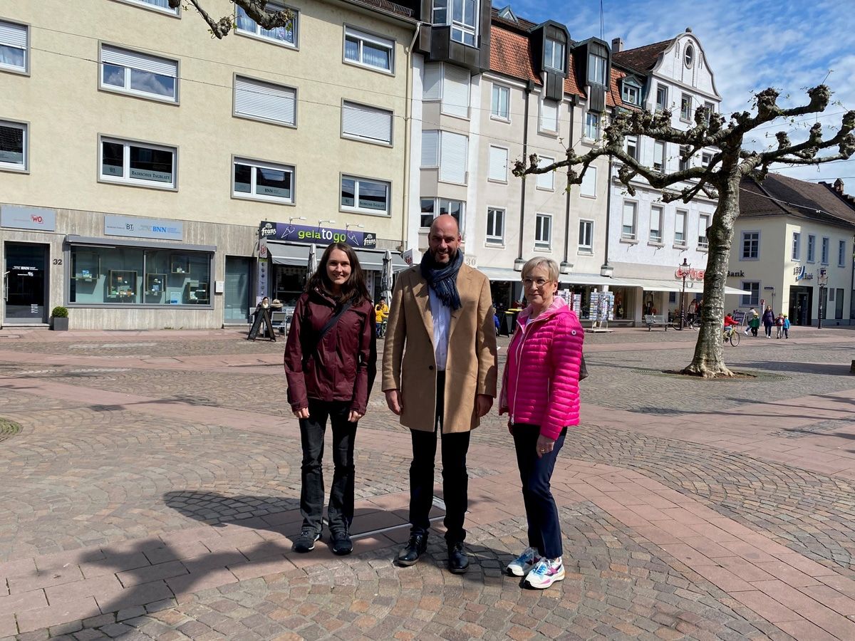 Der Marktplatz soll belebter werden. Diesen Wunsch haben Rastatts Gewerbetreibende gegenüber Wiebke Freund (v.l.), Torsten von Appen und Sabine Karle-Weiler beim Innenstadtrundgang zum Ausdruck gebracht.
