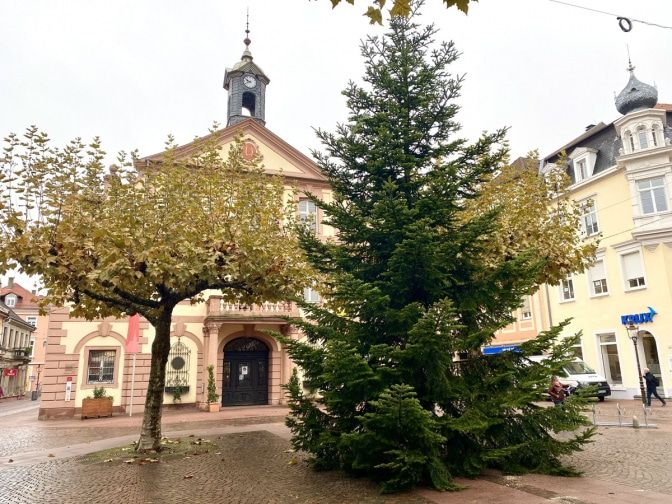 Seit Freitagmorgen steht auf dem Marktplatz der Stadt-Weihnachtsbaum. Da es in diesem Winter nach einem Jahr coronabedingter Unterbrechung auch wieder einen Weihnachtsmarkt auf dem Marktplatz geben wird, ist der Baum an seinen angestammten Platz direkt vor dem Historischen Rathaus zurückgekehrt.